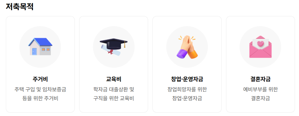 청년들의 주거, 교육, 결혼, 창업 자금 마련을 위한 디딤돌로, 사회 첫걸음을 준비하는 데 큰 힘이 됩니다.