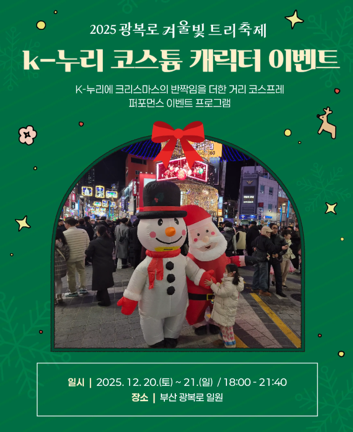 | 광복로 겨울빛 트리축제 | 2025.12.05 ~ 2026.02.22 | 무료 | 야간 산책·사진 |