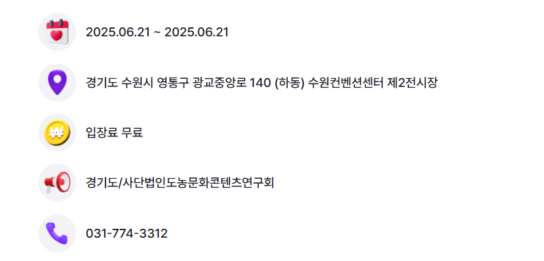 | 경기미 김밥 페스타 | 6.21 (본행사) | 수원컨벤션센터 외 |