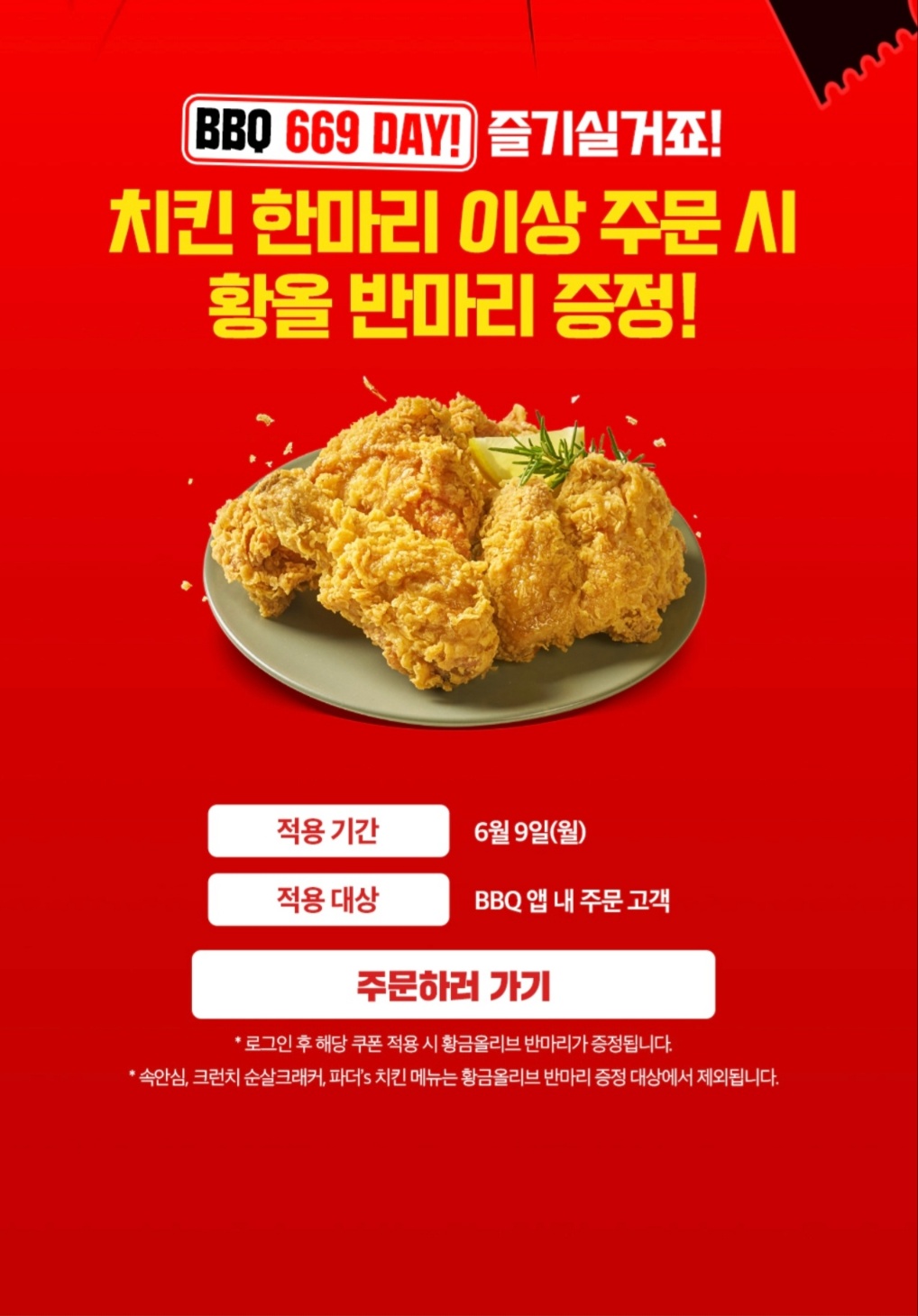 | 이벤트명 | 669데이 BBQ 반마리 무료 이벤트 |